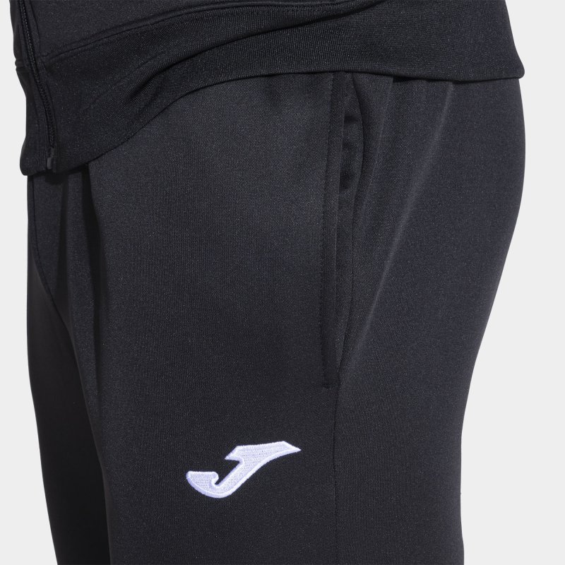 Men's tracksuit, suitable for training in cold weather thanks to its warm inner fabric. Consists of a zip-up sweatshirt and long pants. An essential and functional set for any activity. The sweatshirt features a full zip closure, high collar, and ribbed cuffs, and waistband for a better fit. Also includes two side pockets without zippers to store small objects. Contrasting color design. On the other hand, the pants have an elastic waistband with a flat inner drawstring and two side pockets without zippers. Both garments have been made with interior fleece fabric, providing thermal protection to the athlete. Soft on the skin, comfortable and ensuring freedom of movement. Joma logo embroidered.