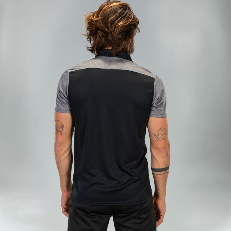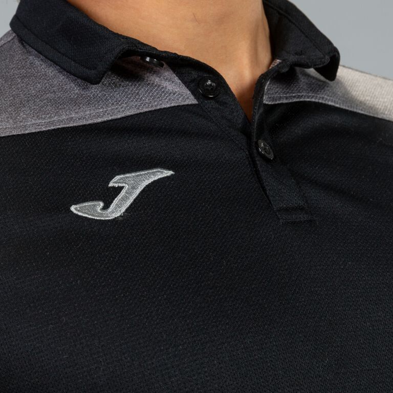 Polo shirt that is characterized by the contrast in color between the neck and the front with respect to the yoke and the sleeves. Buttoned collar and embroidered logo.