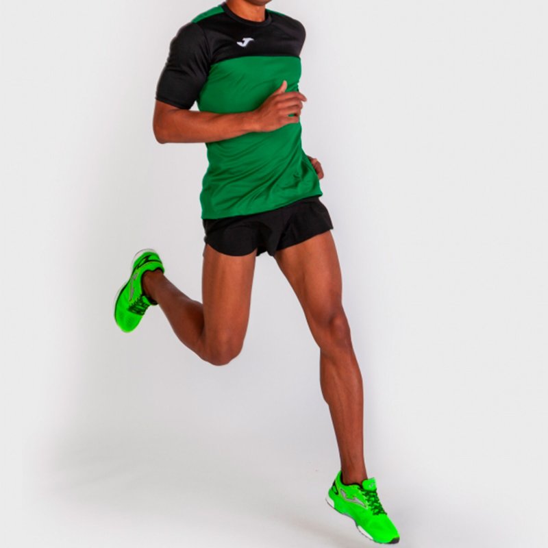 Short-sleeved T-shirt with a round collar and contrasting colour yoke at the front. Stands out due to its design, with forward shoulder seam and embroidered logo.