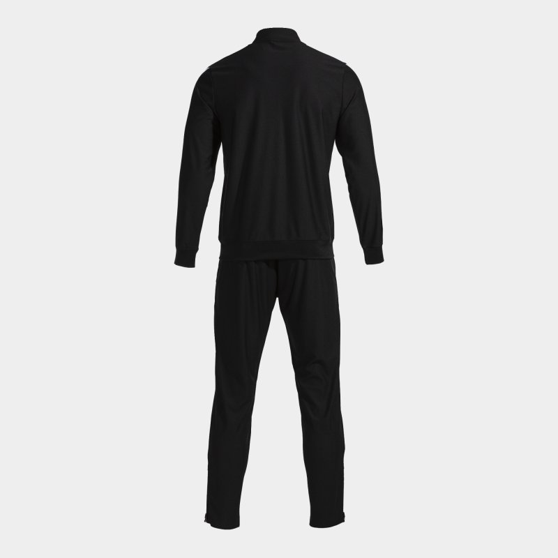 Men's tracksuit. A multi-sport training set that provides versatility, comfort, and freedom of movement during use. An essential for any physical activity. The sweatshirt features a full zipper closure and a chin protector. It adjusts at the cuffs and waist with rib pieces. Additionally, features two front pockets with zipper closure to securely store small personal items. On the other hand, the pants have an elastic waistband with an inner drawstring and zippers at the bottom for easier putting on and taking off. Features two additional pockets. Both garments have been made with comfortable, warm, and resistant tricot fabric. Design with contrasting color pieces on the chest and sleeves. Finished with ribbed edges. Joma logos embroidered.